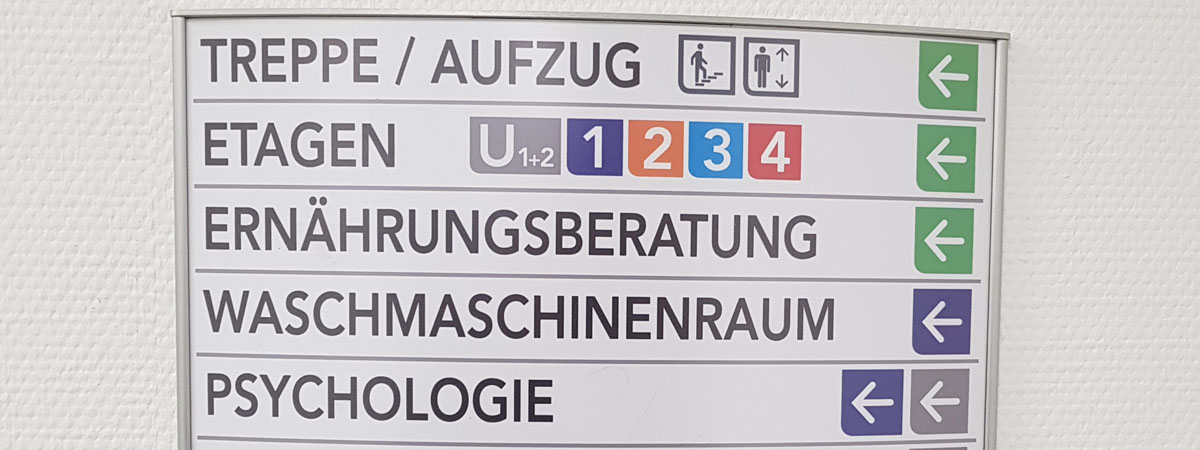Ob als fertige Schildsysteme, Türschilder oder Etagenwegweiser, Pylone oder als Übersichtstafel vor dem Gebäude, Fluchtwegplan oder als individuelles Namensschild an der Bürotür sie führen Sie stressfrei an Ihr Ziel und entlasten somit das Service und Empfangspersonal.